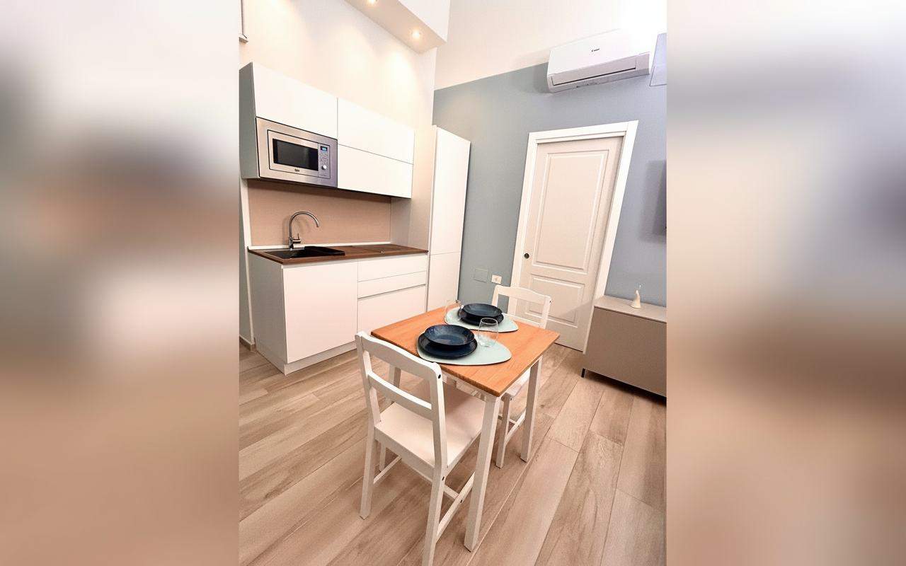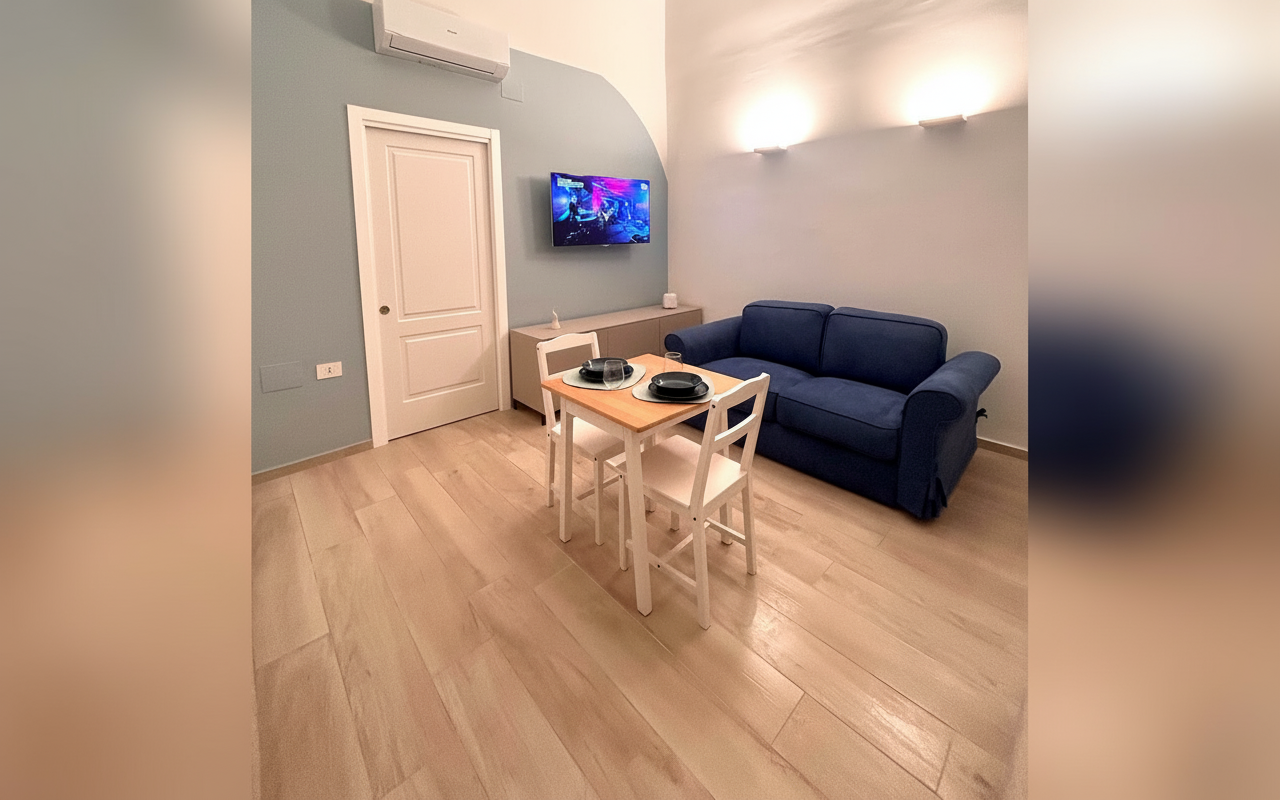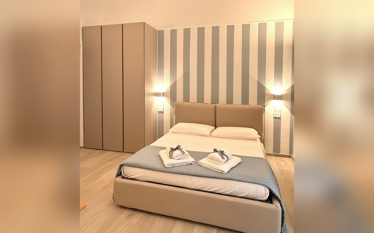 Appartamento finemente ristrutturato composto da una camera matrimoniale con letto comodo e cuscini memory, soggiorno con divano letto, cucina attrezzata e bagno moderno. Gli spazi sono progettati per garantire comfort e praticità, perfetti per ospitare fino a 3 persone. Ideale per chi cerca una soluzione accogliente, ben collegata e pronta a offrire un soggiorno senza pensieri.